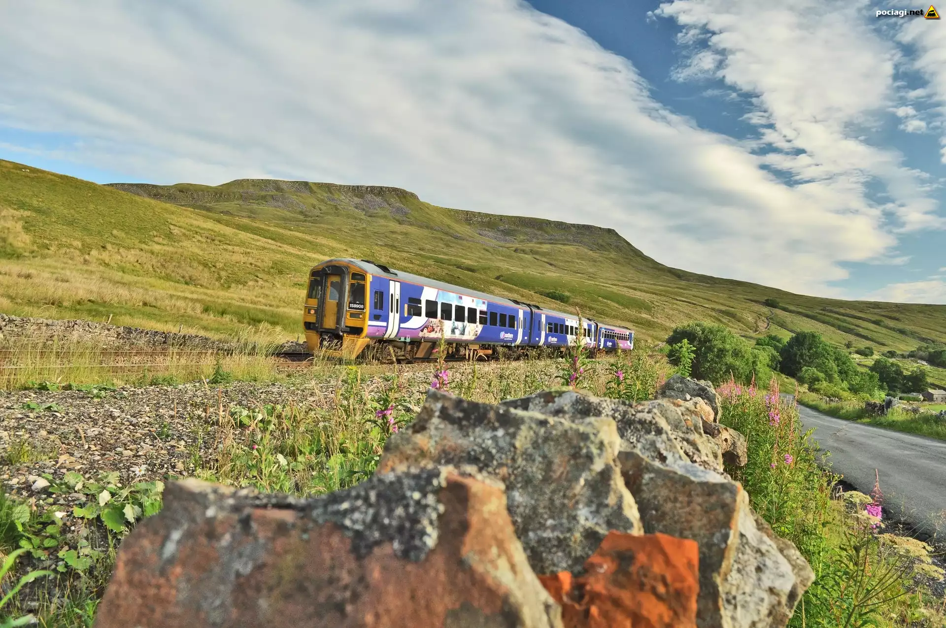 Kolorowy, Pociąg, Wzgórza, Kamienie