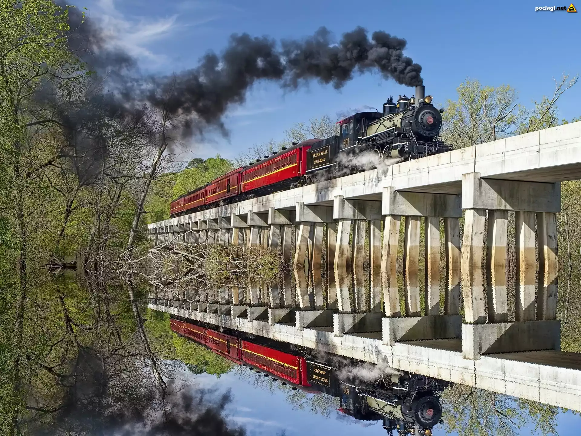 Lokomotywa, Most, Odbicie, Lustrzane