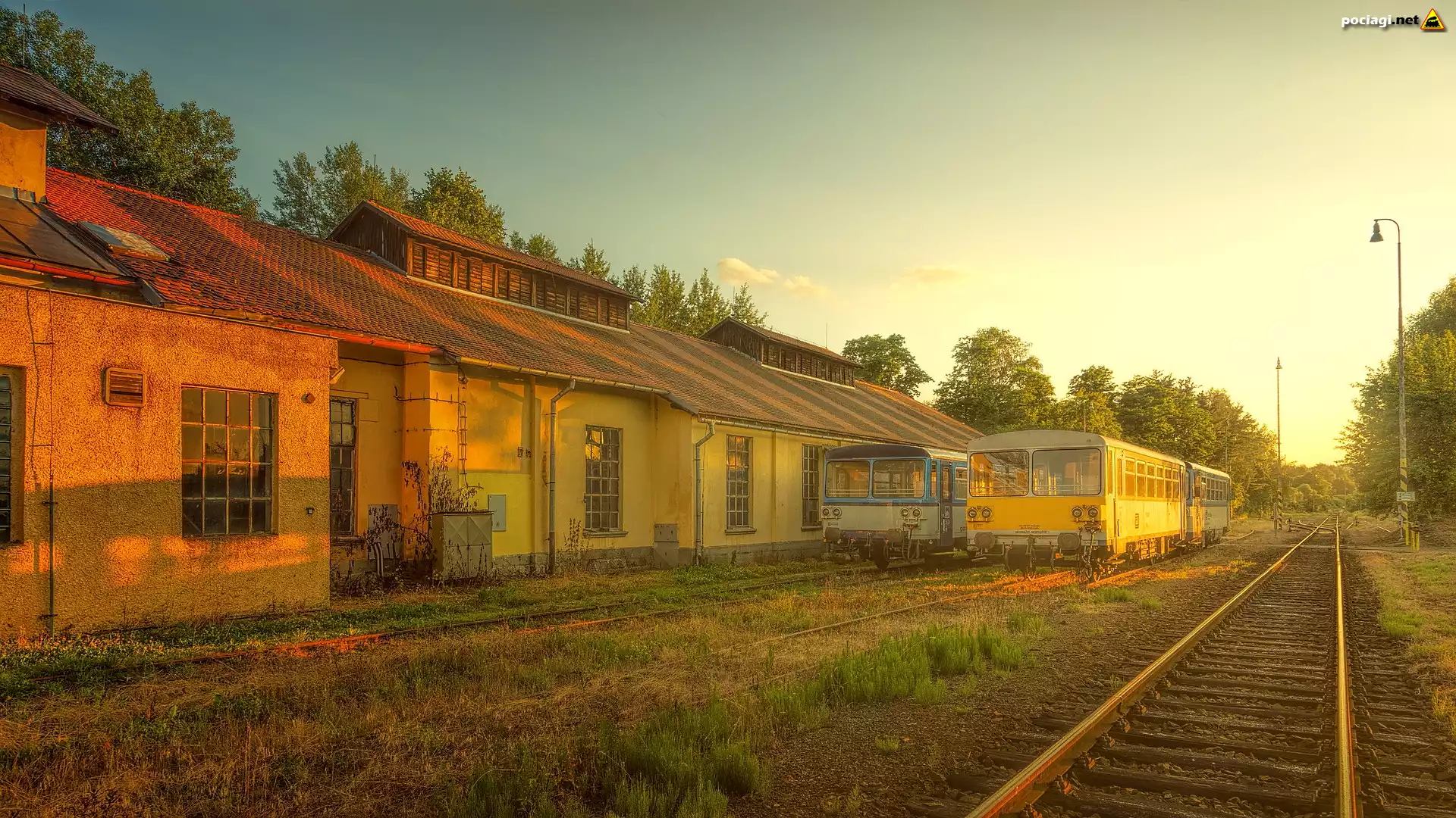 Wagony, Pociąg, Tory kolejowe, Budynki, Domy, Stacja kolejowa