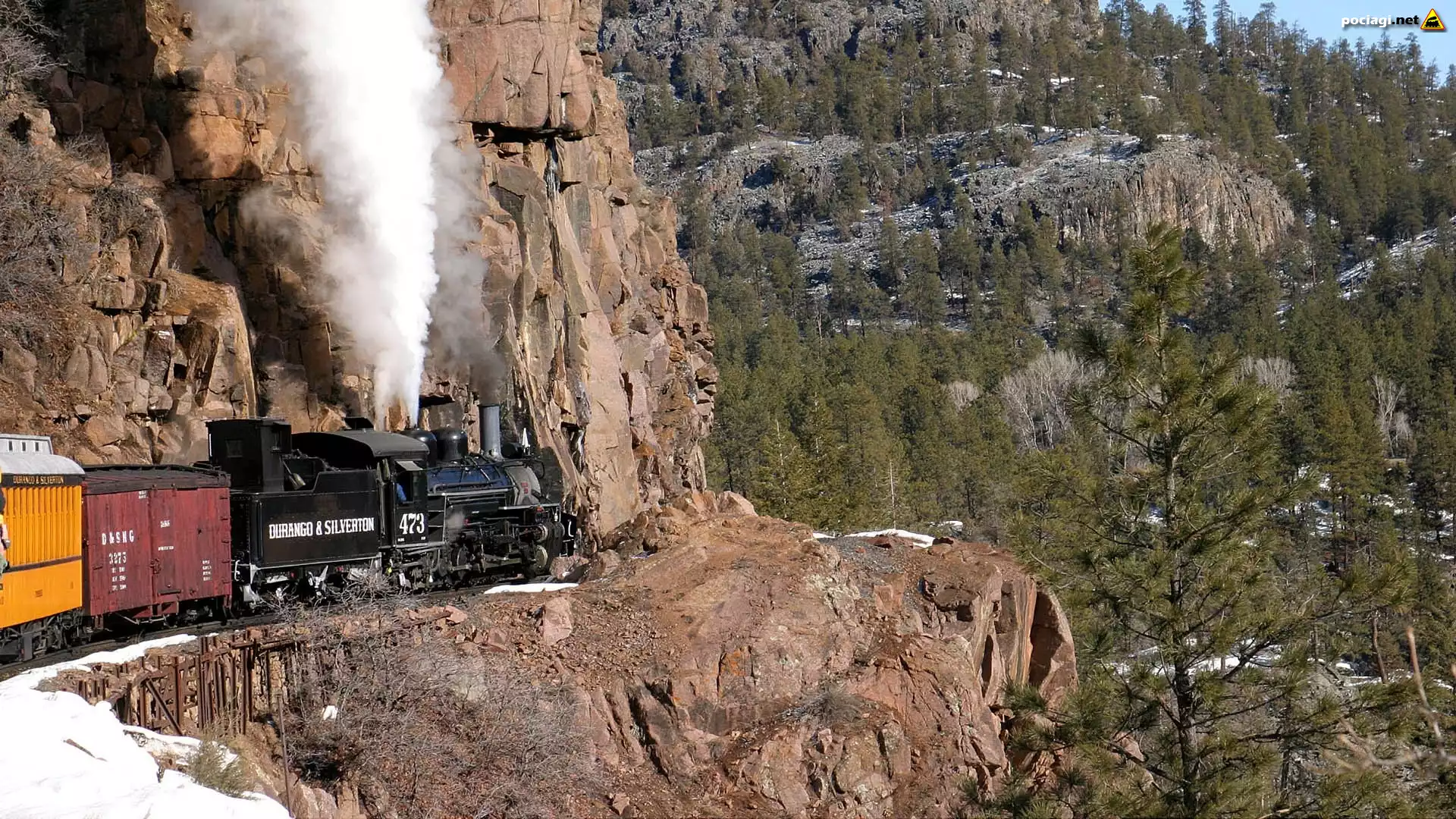 Lokomotywa parowa, Pociąg, Czarny, Dym, Kwiaty, Łubin, Drzewa Mgła, Lasy, Góry, Pociąg Zima, Las, Drzewa, Śnieg, Pociąg, Tory, Niebo 2D Pociąg, Góry, Lasy, Banff, Kanada Pociągi Parowe Pociąg Parowy, Most Most, Pociąg, Zachmurzone, Niebo, Las, Drzewa Stany Zjednoczone, Los Angeles, Pociąg, Dworzec, Palmy Wnętrze Pociągu