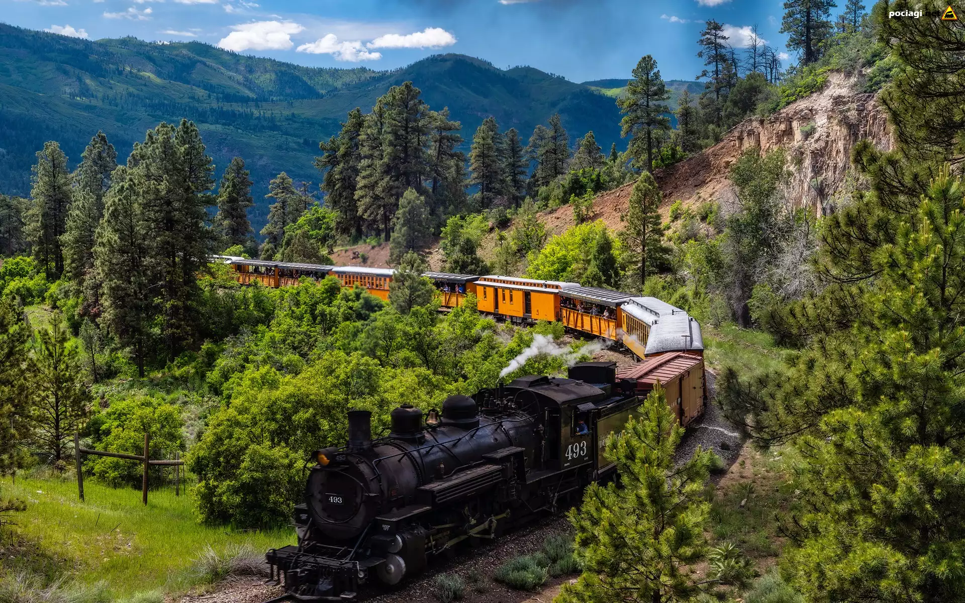 Góry, San Juan Mountains, Las, Drzewa, Pociąg, Stan Kolorado, Stany Zjednoczone