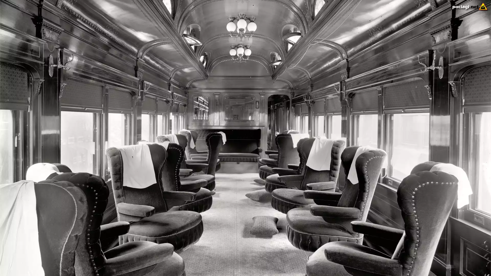 Pociąg, Wagon, Fotele, Ręczniki, Poduszka, Czarno-Białe