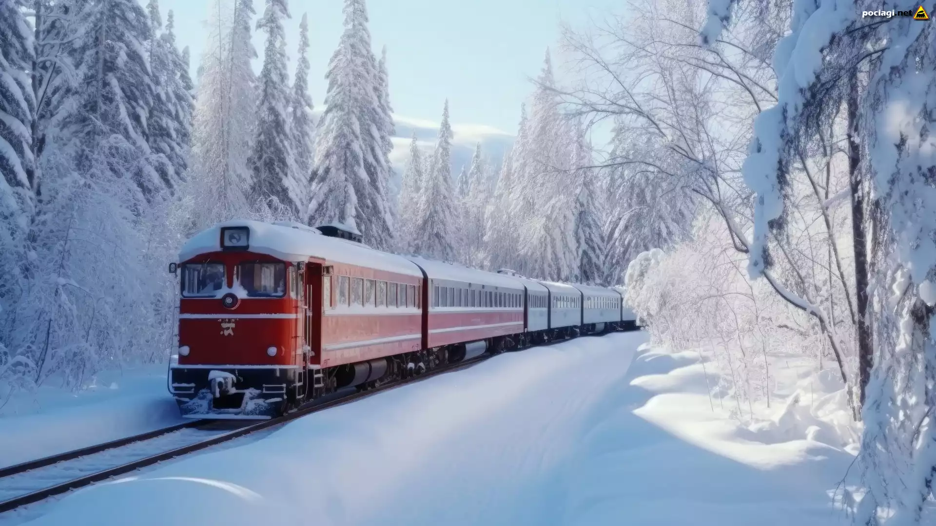 Zima, Śnieg, Mróz, Pociąg, Szyny, Las, Ośnieżone, Drzewa, Gałęzie, Światło